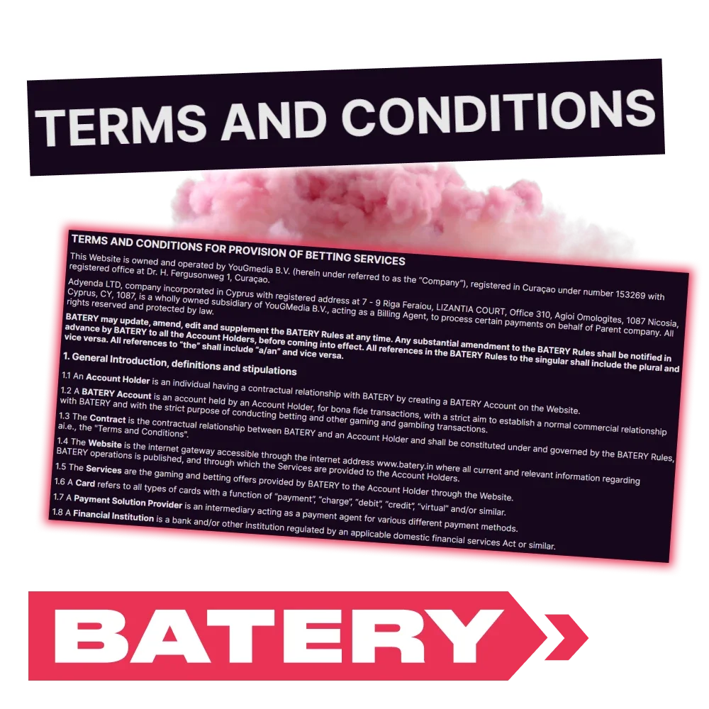 • By registering on the official Batery website in India, the user guarantees that they do not reside in excluded countries where gambling is prohibited by law;